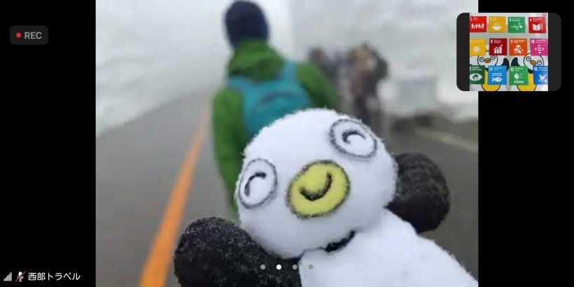 雪の大谷オンラインツアーからデビューした、西部トラベルキャラクターの『ふらり』