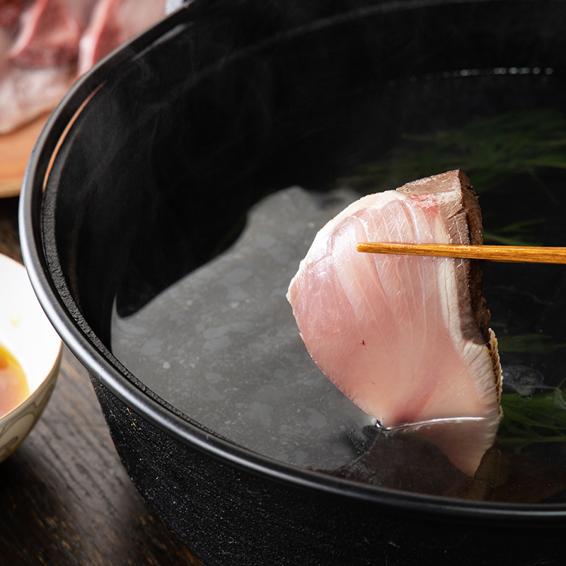 5.お鍋が沸騰したら1~2回ブリをしゃぶしゃぶして召し上がれ