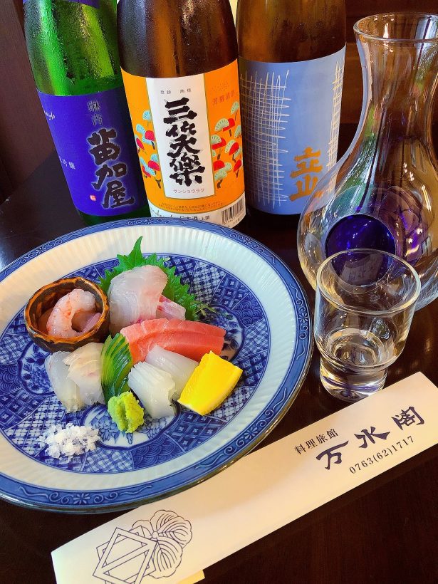 ④料理旅館「万水閣」では地元南砺市や北陸の新鮮な魚介類を食材にした創作和食