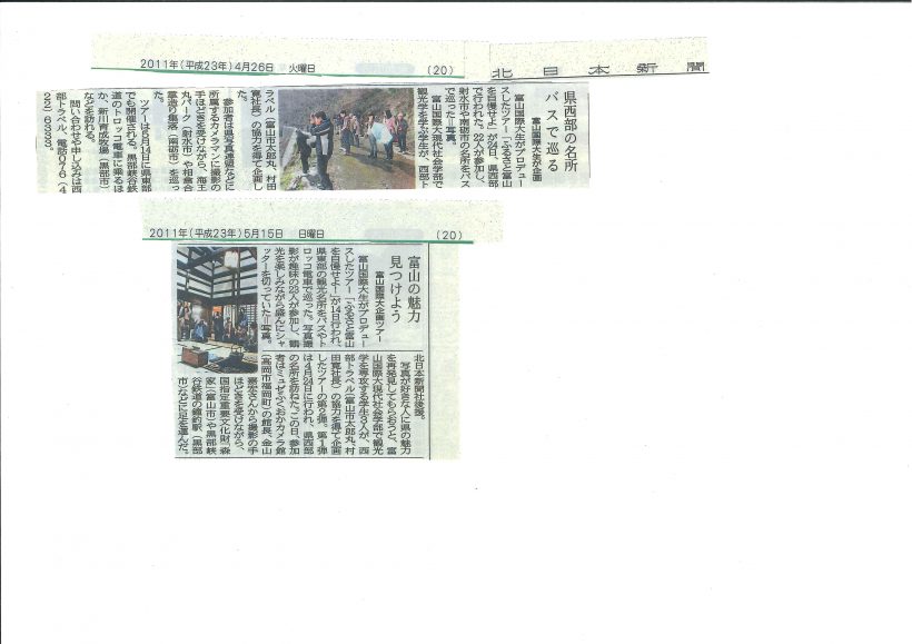 北日本新聞 2011年4月26日・5月15日 富山国際大学生企画ツアー