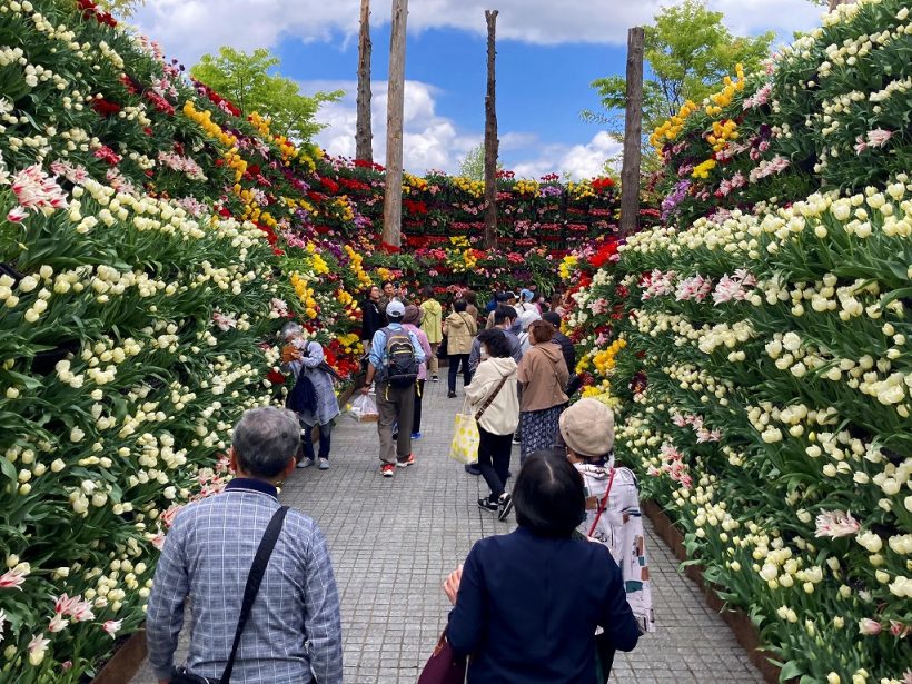 雪の大谷をリスペクトした大人気の高さ4m長さ30mの「花の大谷」など見どころ満載