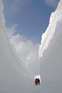 雪の大谷 最深部へ雪の高さ〇〇mへ