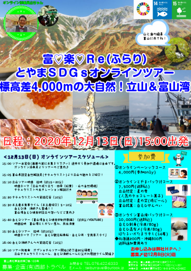 ~終了しました~富・楽・Re(ふらり)とやまSDGsオンラインツアー 標高差4,000mの大自然!立山&富山湾