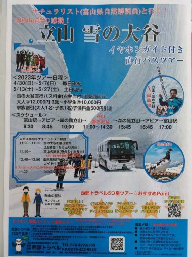 全国旅行支援割引 ツアー第二弾! プライベートガイドツアー ナチュラリストなべちゃんと行く! 富山駅から電車でGO! 凜とした澄みきった山の空気 秋~初冬へ 立山&黒四ダム 日帰りツアー <ツアーおすすめP […]