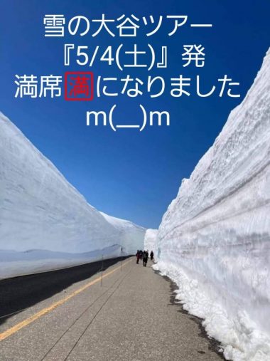 『雪の大谷ツアー』5/4(土)発、満席🈵💺になりました!