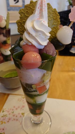宇治抹茶スイーツを忘れてましたー( ̄▽ ̄;)? 皆様、ご覧あれ~? 抹茶パフェ?最高?に美味しかった!甘すぎず✨お団子?もめっちゃ❗美味しくて?お抹茶付きのパフェ? 並んでも食べる価値あり!? [宇治茶 伊藤久右衛門]