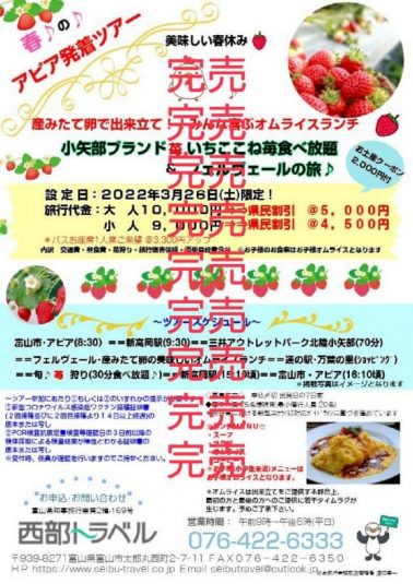 3/26(土)小矢部日帰り🍓ツアー完売👌