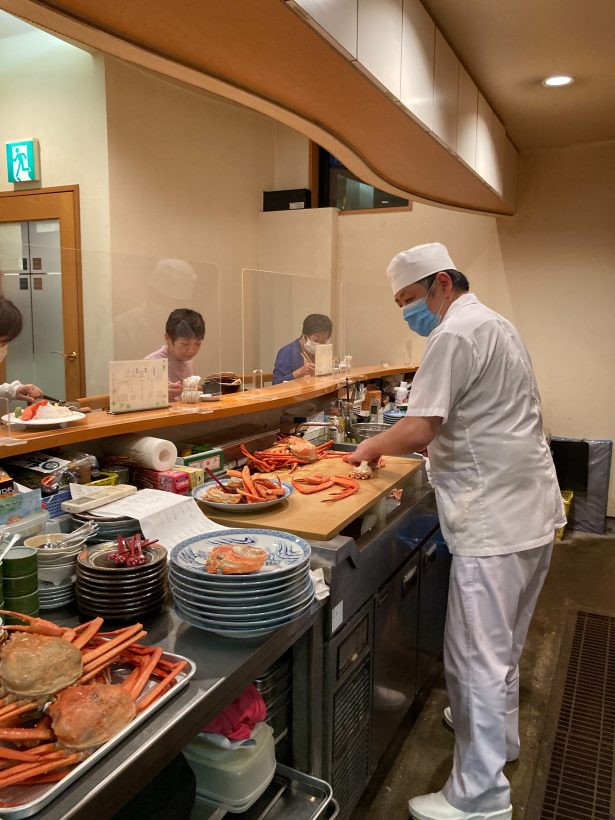 大将が目の前で料理してくれるので、そのカニ🦀料理の凄さがよくわかるぅ~😁