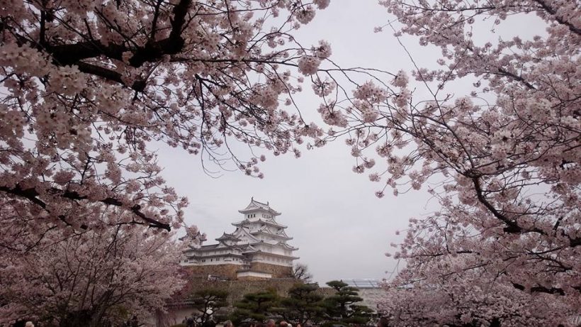 満開の桜、春爛漫の姫路城です。