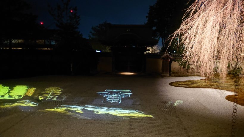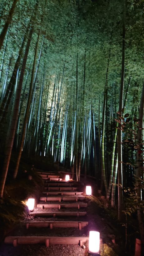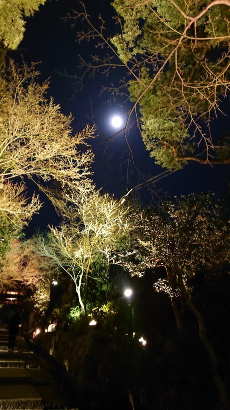 夜は高台寺まで歩きました!月夜で最高?でした!600円の入館料でここまで見せてくれるのには必見の価値あり!さすが!京都やなー(*≧∀≦)✌️めっちゃ⤴️⤴️感動してきましたよープロジェクトマッピングも素敵でしたが、高台なので夜景も素敵?竹林も素敵?言うことなしですよー