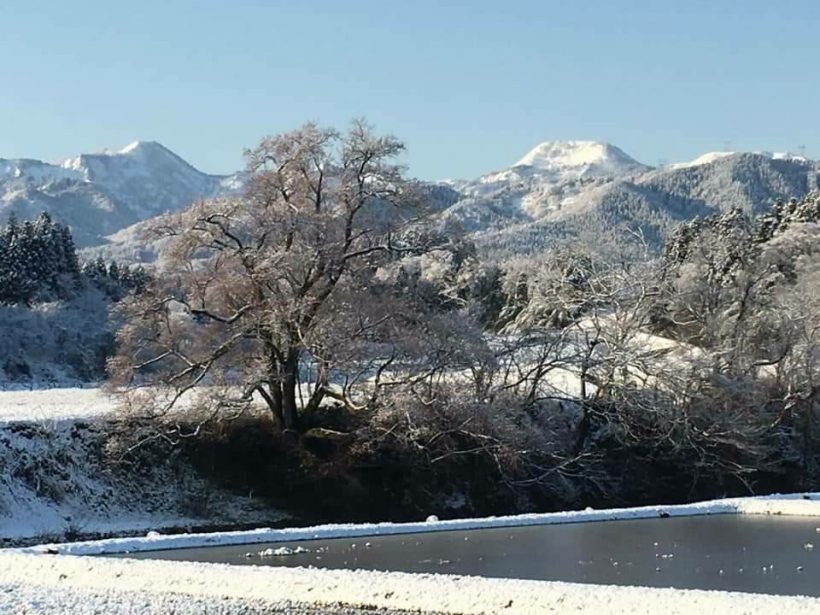 雪で覆われた山々と?のコラボレーションが見事です(*≧∀≦)✌️