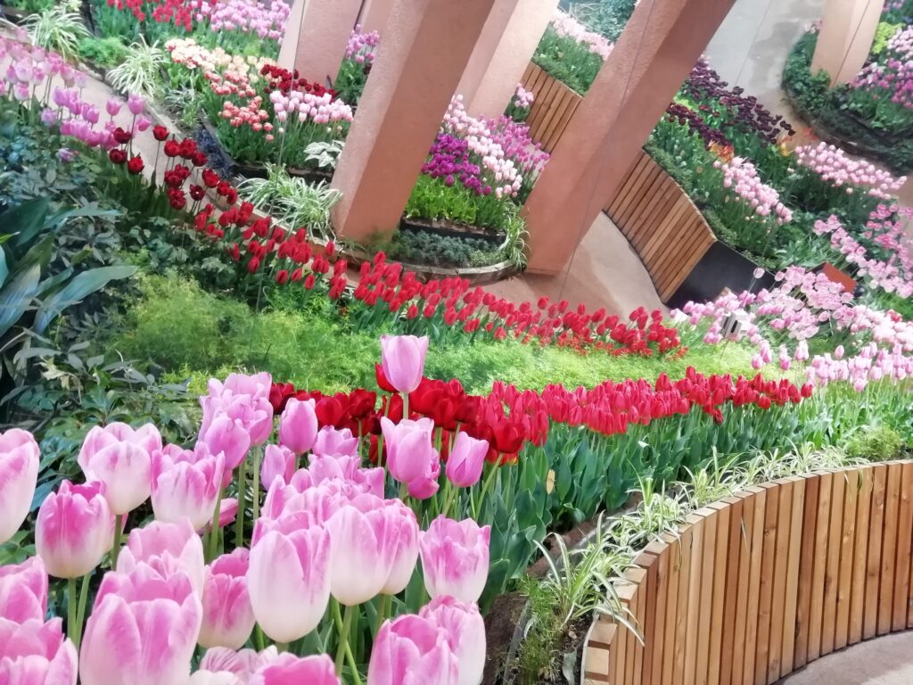 ④一足早く春のとなみチューリップを満喫、チューリップ四季彩館では特別な技術でいつでも花を咲かせてます