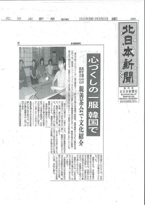 • 北日本新聞 2000年6月30日 韓国親善茶会ツアー