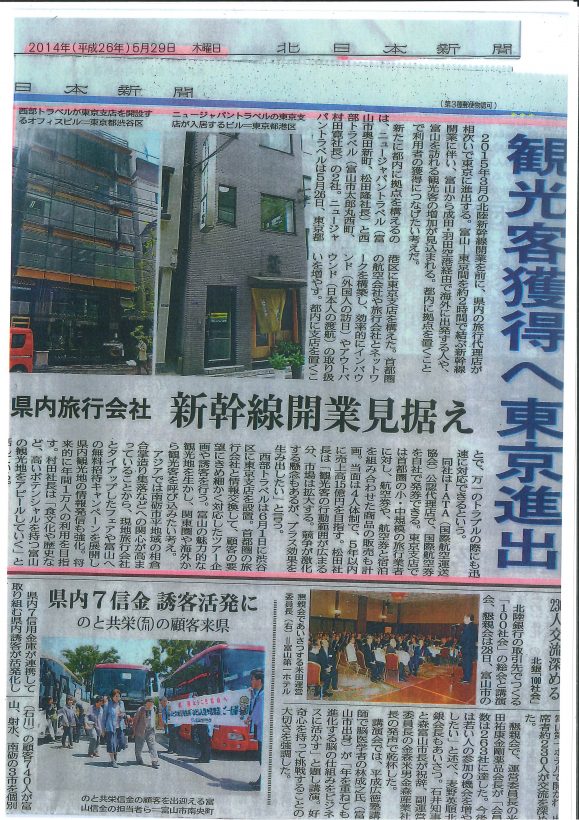 • 北日本新聞 2014年5月29日 西部トラベル 東京支店開設