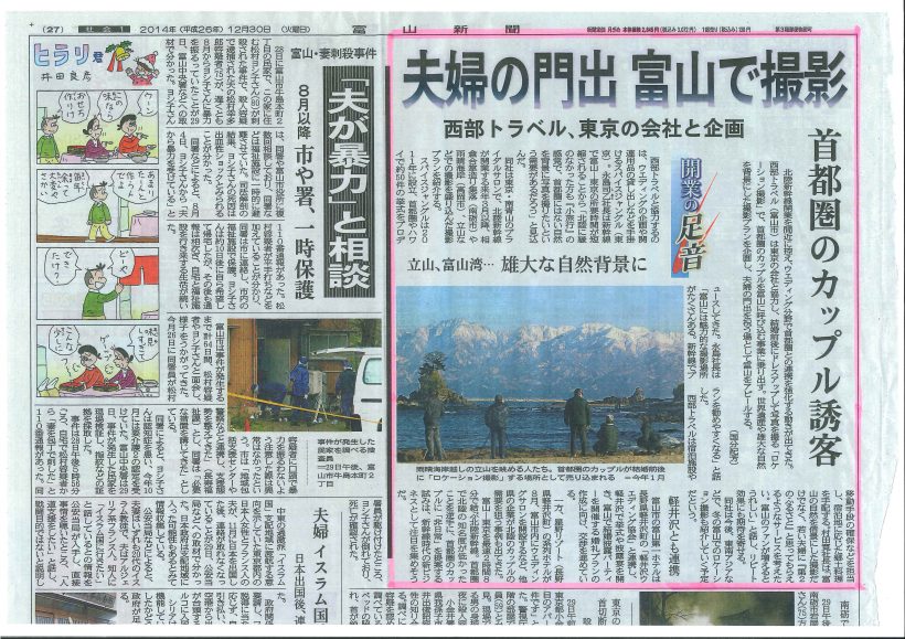 • 富山新聞 2014年12月30日 富山でロケーション撮影(フォトウェディング)