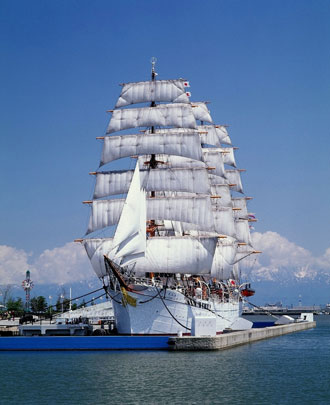 ◆海王丸パーク、年に数度の総帆展帆を見学